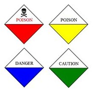 साधारण विषारी कीटकनाशक – याच्या पॅकिंगवर निळा त्रिकोण असतो. त्यावर धोका असे नमुद केलेले असते.