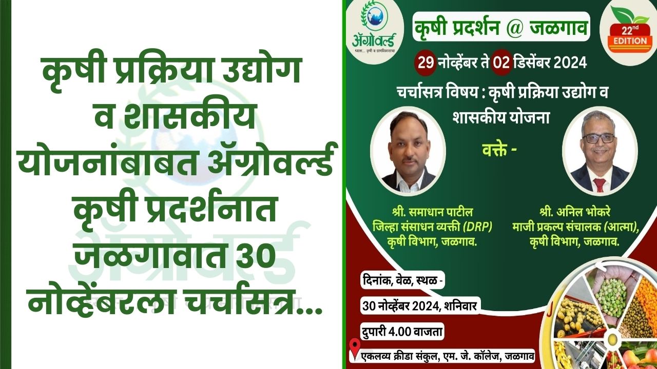 कृषी प्रक्रिया उद्योग व शासकीय योजनांबाबत अॅग्रोवर्ल्ड कृषी प्रदर्शनात जळगावात 30 नोव्हेंबरला चर्चासत्र…