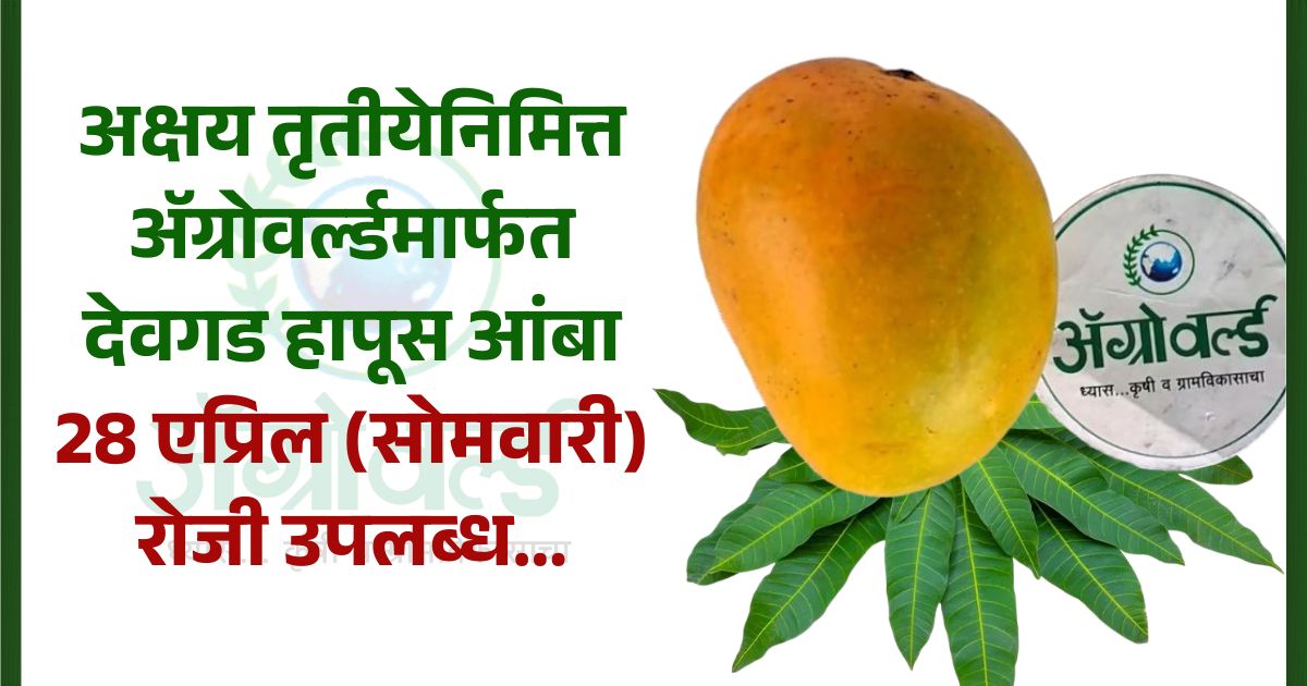 अक्षय तृतीयेनिमित्त ॲग्रोवर्ल्डमार्फत अस्सल देवगड हापूस आंबा 28 एप्रिल (सोमवारी) रोजी उपलब्ध…;