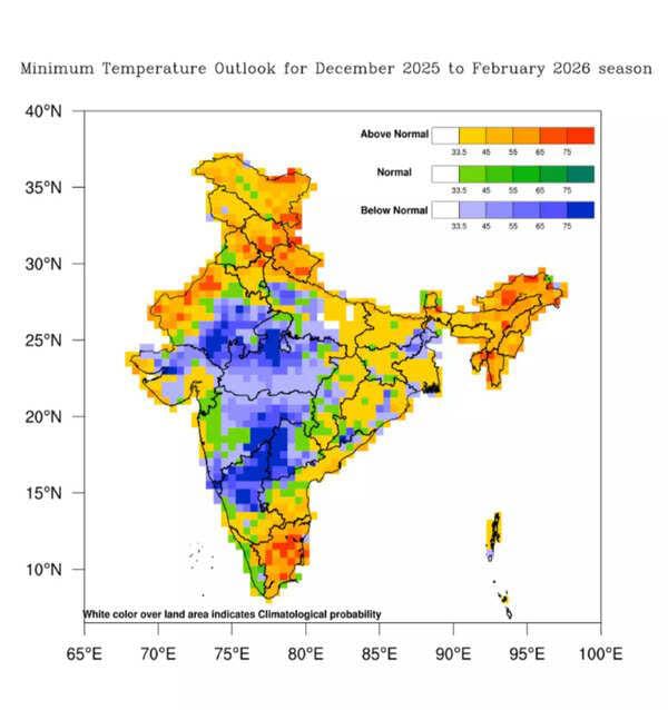 • येत्या 24 तासांत मध्य भारतातील किमान तापमानात कोणताही लक्षणीय बदल होण्याची शक्यता नाही, पुढील 3 दिवसांत तापमान 2 ते 3 अंश सेल्सिअसने घटण्याची शक्यता आहे. त्यानंतर तापमानात कोणताही महत्त्वपूर्ण बदल होणार नाही.