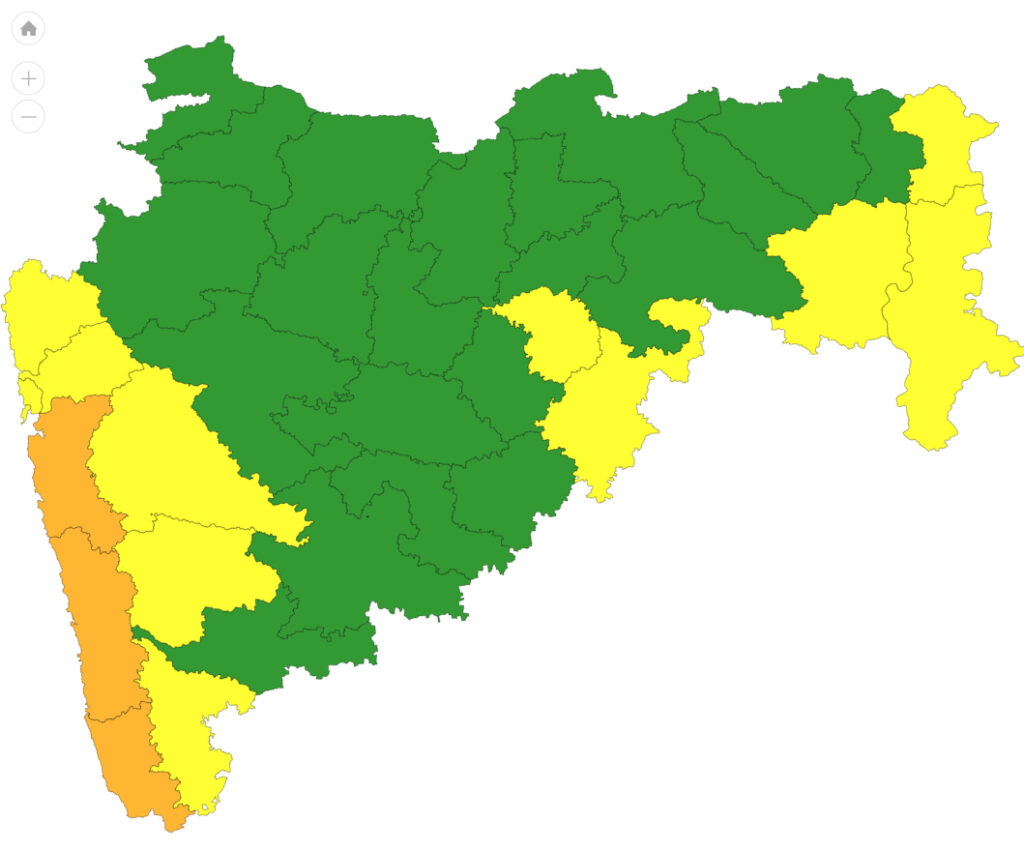 मुंबई, पुणे, पालघर, ठाणे, सातारा, कोल्हापूर, हिंगोली, नांदेड, चंद्रपूर, गोंदिया आणि गडचिरोली या जिल्ह्यांना हवामान विभागाकडून (IMD) मुसळधार पावसाचा इशारा देण्यात आला असून याठिकाणी यलो अलर्ट देण्यात आला आहे.