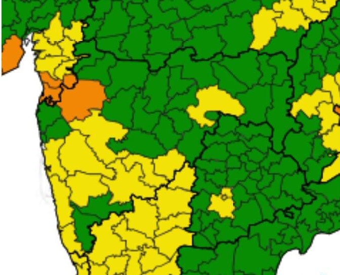 यलो: यवतमाळ, अहिल्यानगर, पुणे, सातारा, सोलापूर, बीड, धाराशिव, लातूर, रायगड, रत्नागिरी, सिंधुदुर्ग