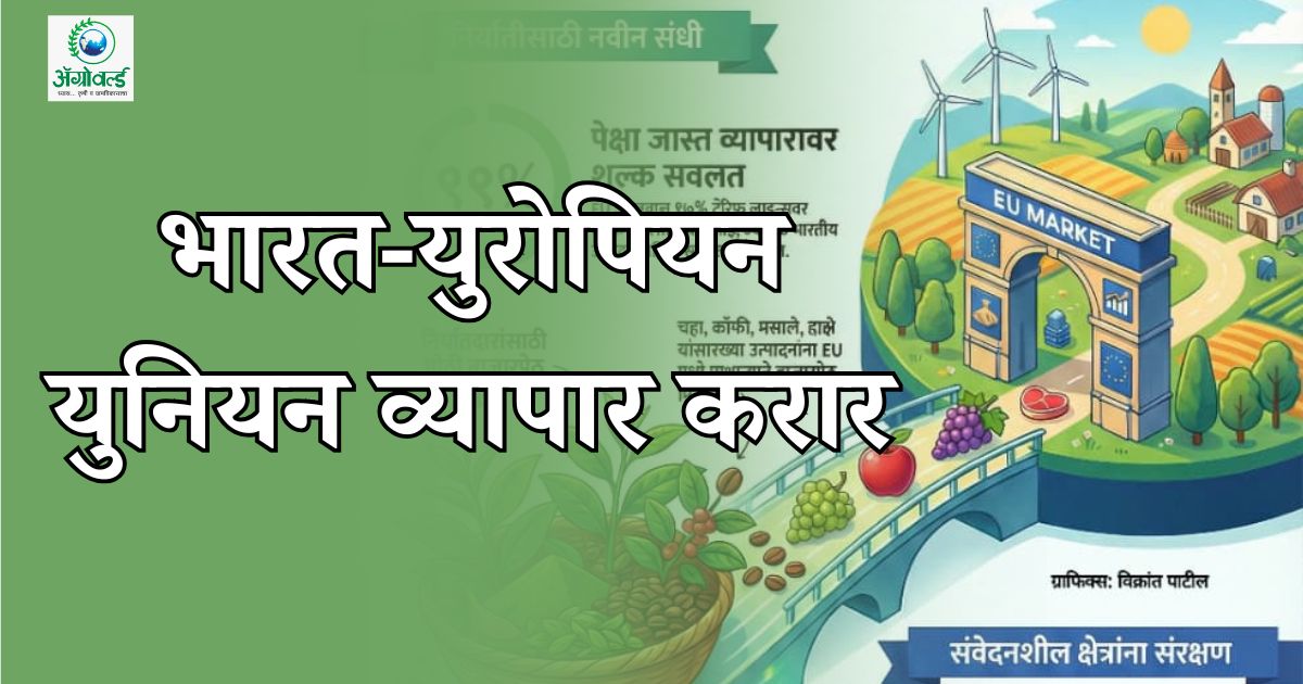 मुंबई – युरोपियन कमिशनच्या अध्यक्षा उर्सुला वॉन डर लेयन यांनी भारत-युरोपियन युनियन (EU) मुक्त व्यापार कराराला (FTA) ‘मदर ऑफ ऑल डील्स’ असे संबोधले आहे. हे वर्णन या कराराचे धोरणात्मक महत्त्व अधोरेखित करते. जगातील दोन मोठ्या अर्थव्यवस्थांमधील ही भागीदारी तब्बल 2 अब्ज लोकांची एक मोठी व्यापारपेठ निर्माण करते. जवळपास दोन दशकांच्या वाटाघाटीनंतर अंतिम झालेला हा ऐतिहासिक करार भारतीय कृषी आणि संलग्न क्षेत्रांसाठी महत्त्वपूर्ण संधी निर्माण करतो, परंतु त्याच वेळी काही नवीन आव्हाने देखील उभी करतो. या ऐतिहासिक कराराच्या भारतीय कृषी क्षेत्रावरील बहुआयामी परिणामांचे आपण विश्लेषण करुया.