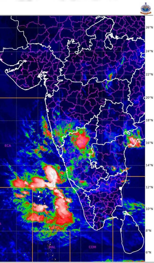 दक्षिण भारतावरील पावसाच्या स्थितीचे उपग्रह छायाचित्र