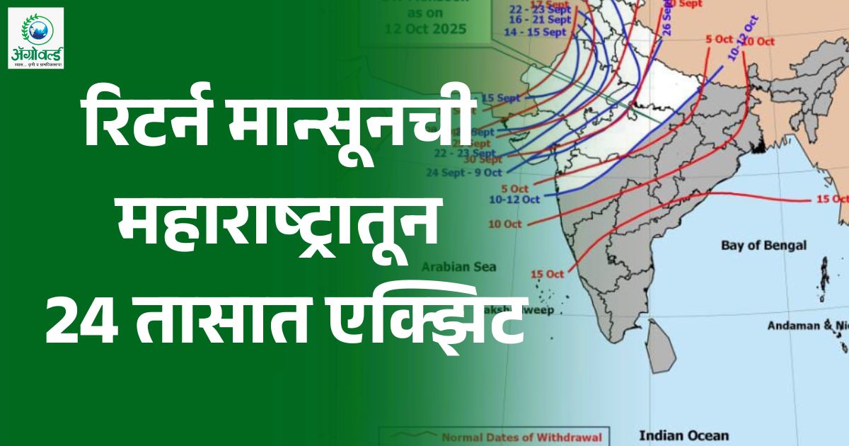 पुढील 24 तासांत, महाराष्ट्र, मध्य प्रदेश, उत्तर प्रदेश आणि बिहारमधील उर्वरित भाग; संपूर्ण झारखंड आणि छत्तीसगड या राज्यातून नैऋत्य मान्सून परतण्यासाठी परिस्थिती अनुकूल आहे. तर, पुढील 2-3 दिवसांत पश्चिम बंगाल, सिक्कीम, ओडिशा आणि तेलंगणाच्या काही भागांमधून आणि ईशान्य भारतातून मान्सून माघारीसाठी अनुकूल स्थिती आहे. मान्सूनने आतापर्यंत रक्सौल, वाराणसी, जबलपूर, अकोला, अहिल्यानगर आणि अलिबाग या पट्ट्यावरील भागातून पूर्णतः माघार घेतली आहे.