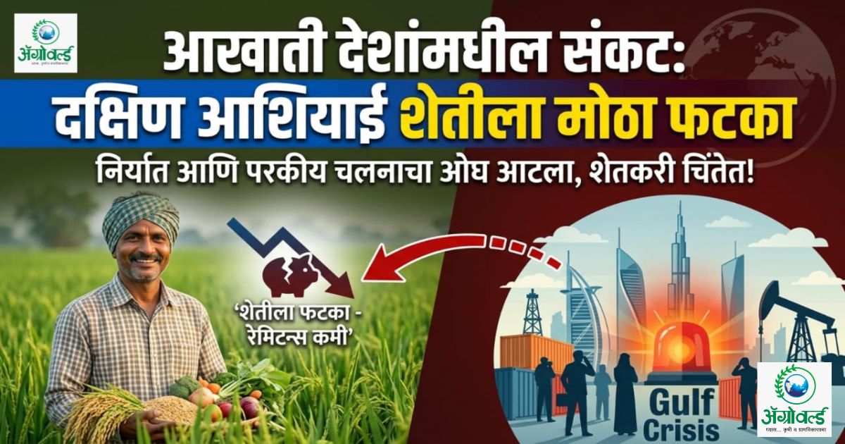 दुबई/नवी दिल्ली – आखाती देशांमध्ये निर्माण झालेल्या ताज्या राजकीय आणि आर्थिक संकटामुळे दक्षिण आशियातील ग्रामीण अर्थव्यवस्थेला मोठा हादरा बसला आहे. भारत, पाकिस्तान आणि बांगलादेशातील लाखो शेतकरी या संकटाच्या छायेत असून, आखाती देशांमध्ये होणारी शेतीमालाची निर्यात आणि तेथून येणाऱ्या परकीय चलनाचा ओघ आटल्याने शेतीचे अर्थकारण धोक्यात आले आहे. या संकटाचा परिणाम पिकांच्या प्रकारानुसार वेगवेगळ्या स्तरावर जाणवत आहे.