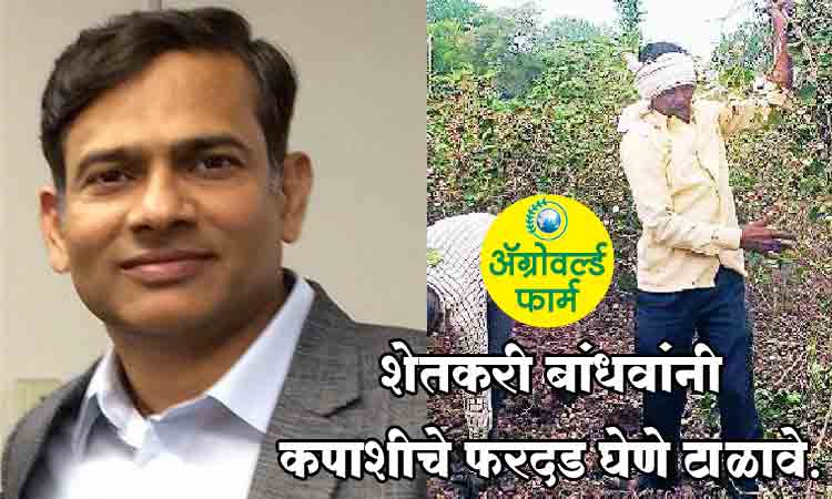 राज्यात सुमारे ४४ लाख हेक्टरहून अधिक कापूस या प्रमुख पिकाची लागवड होते. जागतिक तापमानवाढीच्या परिणामामुळे कापसावरील किडीसुद्धा प्रबळ झाल्या आहेत. आपण त्यांचे वेगवेगळ्या प्रकारे नियंत्रण करीत आहोत.  त्यात सर्वात महत्वाचा उपाय म्हणजे या किडींचे जीवनचक्र नष्ट करणे. त्यासाठी शेतकऱ्यांनी कपाशी पिकाचे फरदड (दुबार) घेणे टाळावे आणि त्याठिकाणी रब्बीतील कमी कालावधीची पिके घ्यावी. जेणेकरून पीक बदल झाल्याने पुढील हंगामात किडींचे संक्रमण थांबेल, असे आवाहनवजा सल्ला राज्याचे कृषी आयुक्त डॉ. सुहास दिवसे यांनी ॲग्रोवर्ल्डशी बोलतांना राज्यातील शेतकऱ्यांना दिला.