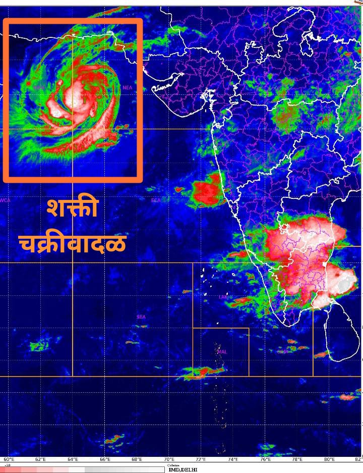 सध्या बंगालच्या उपसागरातील कमी दाबाचे क्षेत्र अरबी समुद्रात दाखल होऊन त्याचे ‘शक्ती’ चक्रीवादळात रूपांतर झाले आहे. मुंबईपासून 800 सागरी मैलांवर गुजरातच्या पश्चिम-दक्षिण दिशेला हे वादळ आहे. 7 ऑक्टोबरपर्यंत या वादळाचा जोर कमी होऊन ते गुजरातकडे सरकेल. त्यामुळे गुजरातमध्ये लवकरच परतीचा पाऊस सुरू होण्याचा अंदाज आहे. या कालावधीत मुंबईसह राज्यभरात पुन्हा पाऊस राहू शकेल. महाराष्ट्र राज्यातून मान्सूनचा पाऊस 12 ऑक्टोबरनंतरच परतण्याचा अंदाज आहे. दरम्यान, सध्याच्या अपेक्षित वाटचालीनुसार तरी शक्ती चक्री वादळाचा मुंबईला फारसा काही धोका नाही.