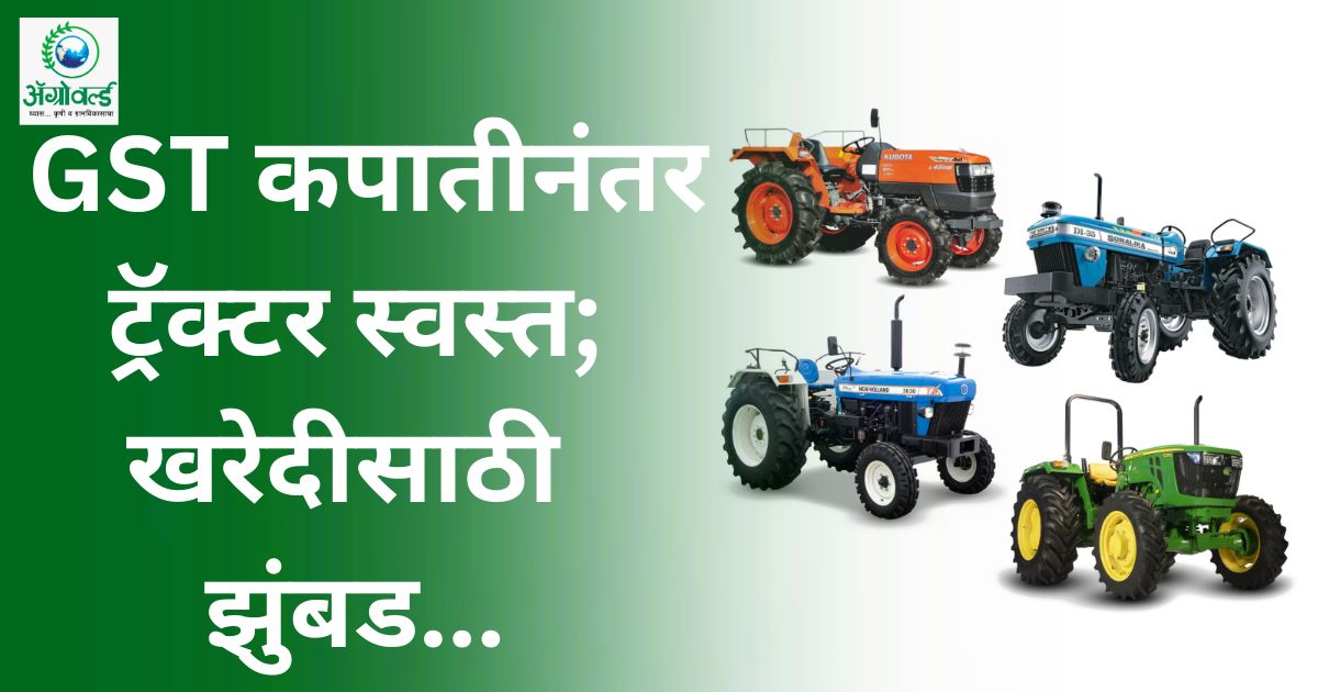 GST कपात झाल्यानंतर देशभरासह राज्यातही ट्रॅक्टर बुकिंग आणि विक्रीत मोठी वाढ होत आहे. GST कपातमुळे लहान आणि मध्यम शेतकऱ्यांना ट्रॅक्टर घेणे सोपे झाले आहे. राज्यात विविध ठिकाणी ट्रॅक्टर बुकिंगसाठी गेल्या दोन दिवसांत मोठी झुंबड उडाली आहे. विशेषतः सणासुदीच्या काळात खरेदी वाढणार असून त्यासाठी बुकिंग आता जोरात सुरू आहे.