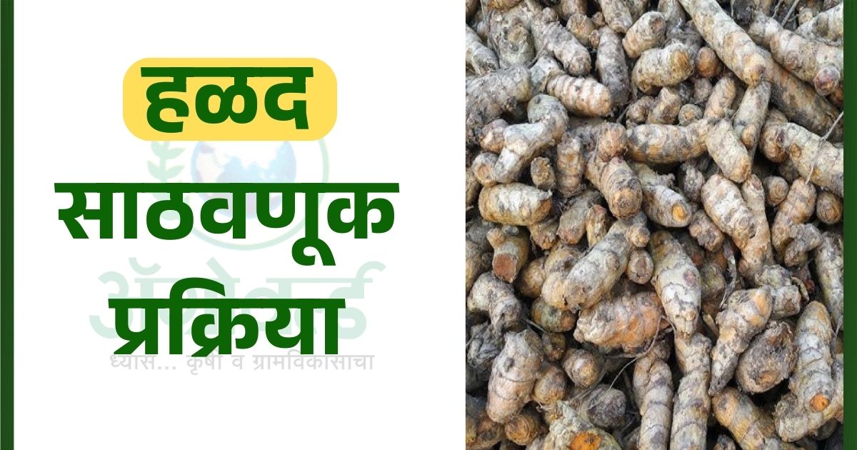 हळद साठवणूक प्रक्रिया : हळद काढल्यानंतर हळद शिजवणे, वाळवणे, पॉलिश करणे, आणि प्रतवारी करणे इत्यादी प्रक्रिया करावी लागते. हळद काढणीनंतर 4 ते 5 दिवसांमध्ये हळद शिजवण्याची प्रक्रिया करावी. हळद शिजवण्याअगोदर हळकुंडांची प्रतवारी करणे आवश्यक आहे. कारण सर्व हळकुंडांचा आकार एकसारखा नसून जाडी कमी अधिक असतो. जाड हळकुंडांना शिजवण्यास जास्त वेळ लागतो, तर लहान हळकुंडांना कमी वेळ लागतो. हळद शिजवल्याने बुरशी व इतर जीवजंतूंचा नाश होतो व हळकुंड रोगमुक्त राहतात.